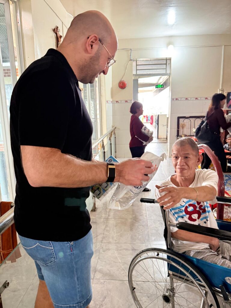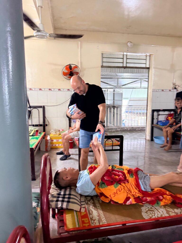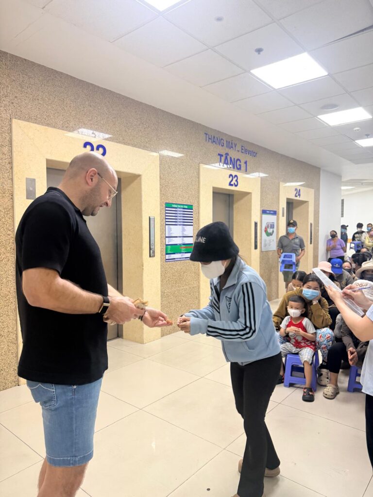 Vervolgens hebben we opnieuw het oncologisch ziekenhuis bezocht, waar we vorig jaar ook al aanwezig waren. Hier hebben we wederom giften uitgedeeld aan patiënten voor behandelingen en medicijnen. In Vietnam dekt de zorgverzekering slechts 80% van de kosten; de overige 20% moeten mensen zelf betalen. Voor velen is dat onmogelijk.